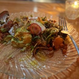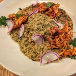 Menu does change quick. Was hoping to get the garlic noodles but wasn't on menu. Hibiscus limeade was super delicious. Great to have a non alcoholic made option. Chile verde was good and spicy. The pork was tender and flavorful. Tuna crudo was good and plated well. The tiny peppers are super hot but still enjoyed. Kashmiri chicken was just ok. I liked the pineapple but the sauce wasn't enough to give any compliment of flavor. The earl grey cake was worst part. Just dry and boring. Not a way I wanted to end the meal. Would give another shot as food was good just wasn't wowed with anything I ordered.