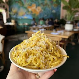 We went for the San Francisco garlic noodles but we stayed for all the delicious dim sum.. we went during restaurant week so we tried several things and everything was delicious. You can't go wrong with the garlic butter noodles, but I really enjoyed the shrimp dumplings, the chicken and rice dumplings and the pork lumpia. The service was good. We had large group of 7 so we were not seated in the main dining room. We were seated the little side room by the entrance. This area of the restaurant was hot! We were all sweating by the end of the meal so I would definitely sit in the main room next time which is decorated so cute!